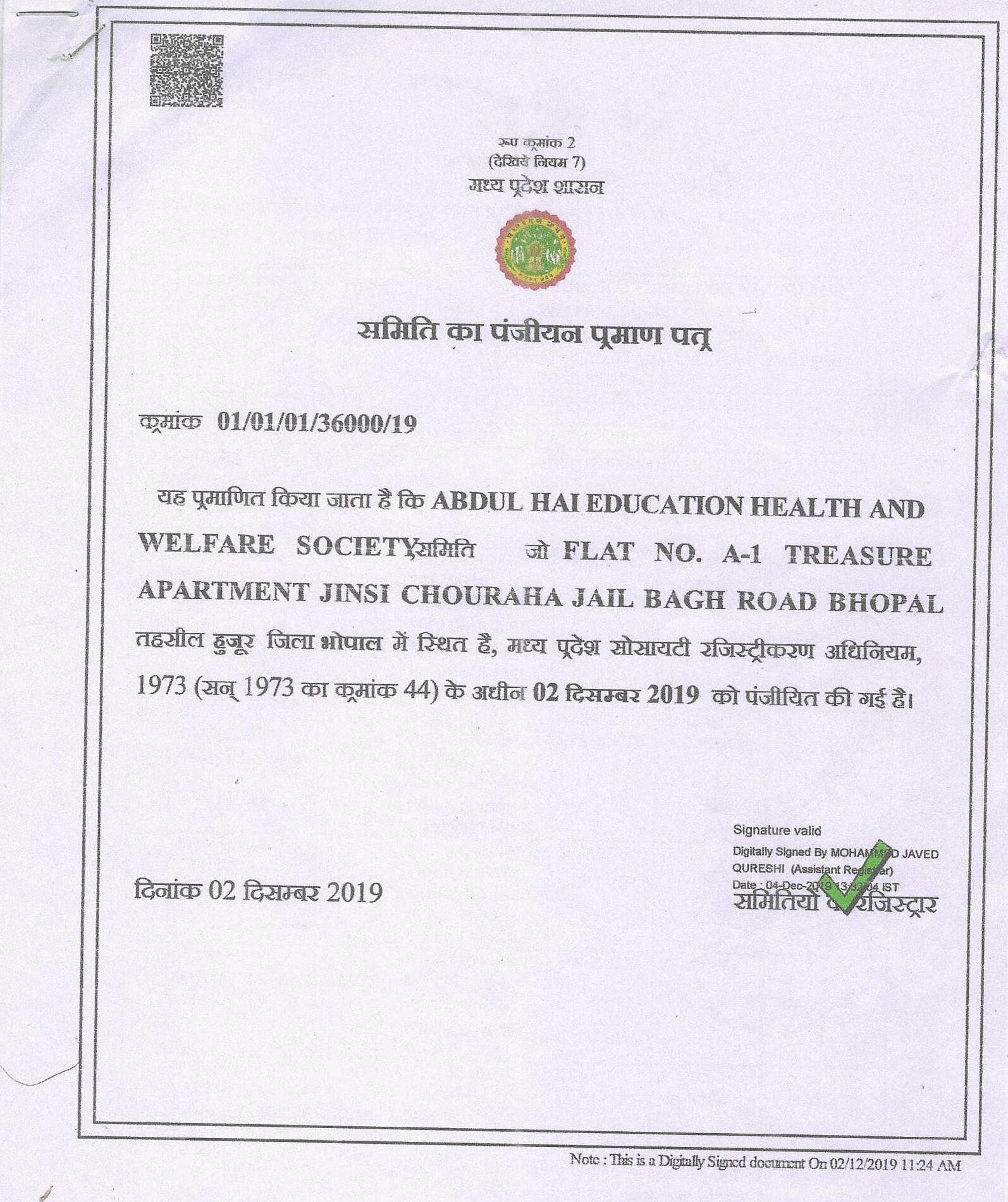 Alhamdulillah, so far 44 students of Darul Uloom Allama Abdul Hai have graduated with the degree of Alimiyat from Darul Uloom Nadwatul Ulama Lucknow. Besides, 120 students, enriched with the wealth of memorizing the Holy Quran, are rendering religious, religious and spiritual services in Bhopal and the surrounding areas.